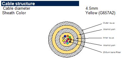 Cable Type 12 single mode fibers (G657 A2) , LSZH jacket, yellow